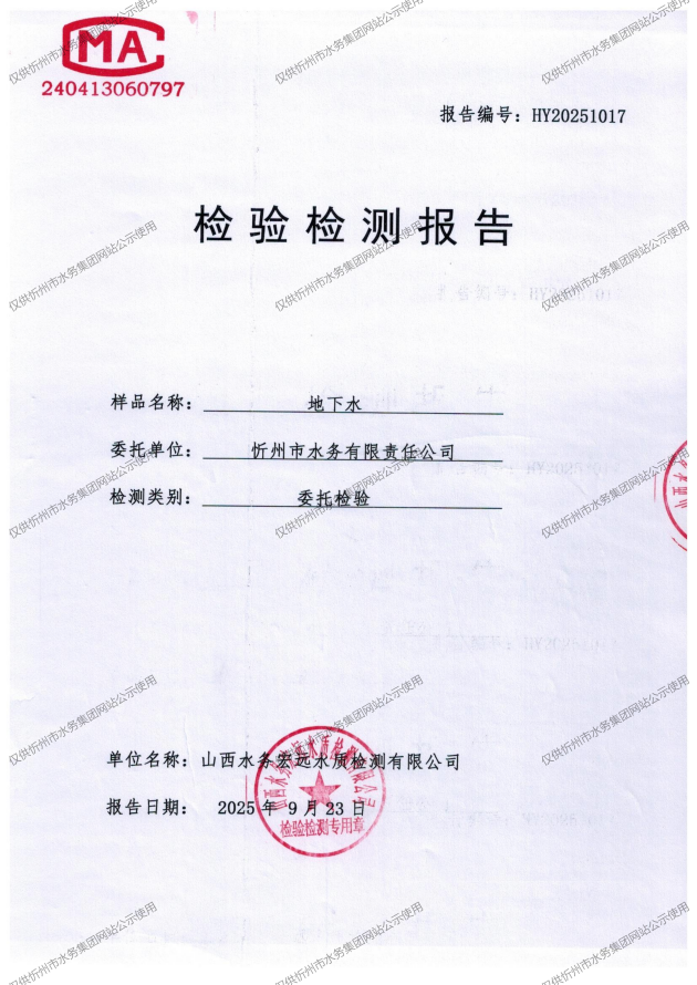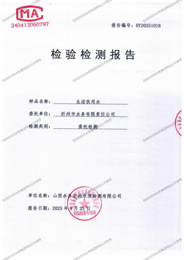 忻州城區(qū)公共供水水源水、出廠水、管網(wǎng)水、管網(wǎng)末梢水2025年9月份水質(zhì)信息公示